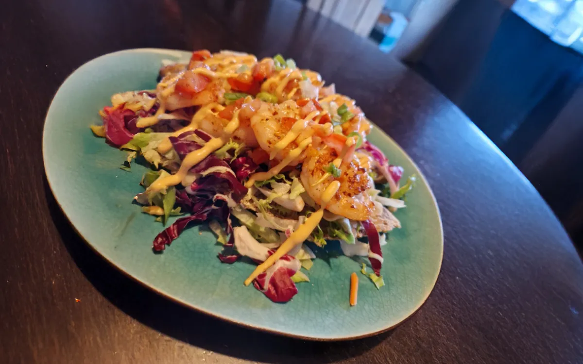 salade met gemarineerde kip, paramezaan en ranchsaus